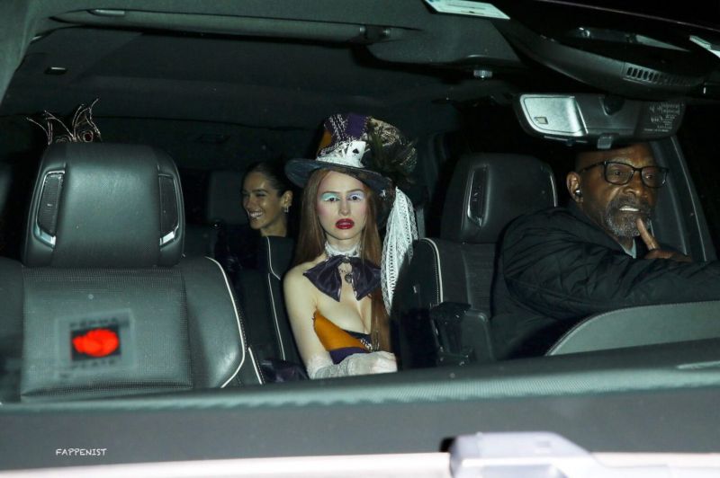 Madelaine Petsch and Camila Mendes braless boobs showing nice cleavage with their tits and hot legs in sexy Halloween costumes photographed arriving to a party in LA.