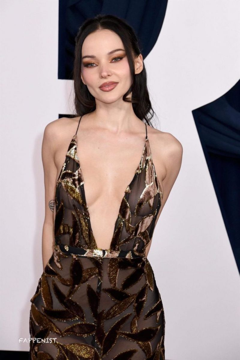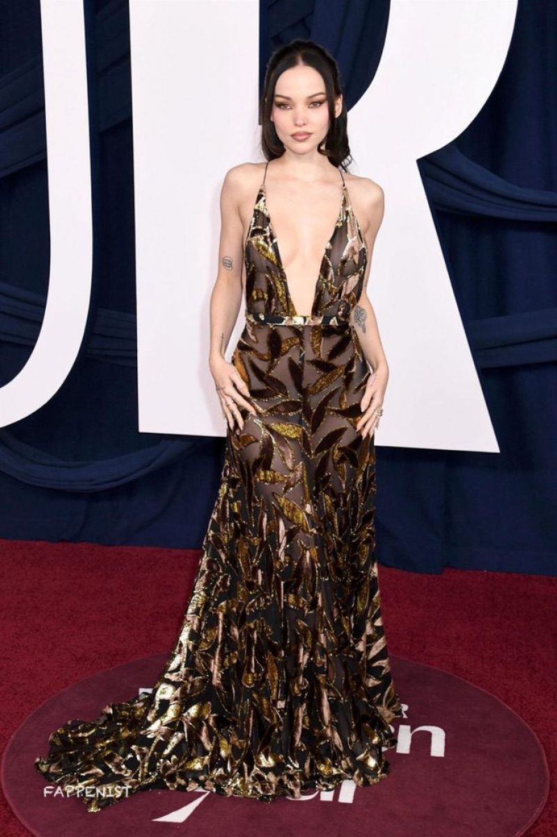 Dove Cameron braless boobs showing incredible deep cleavage with her tits in a very low cut sexy revealing dress at the New York 2025 Glamour Women Of The Year Awards.