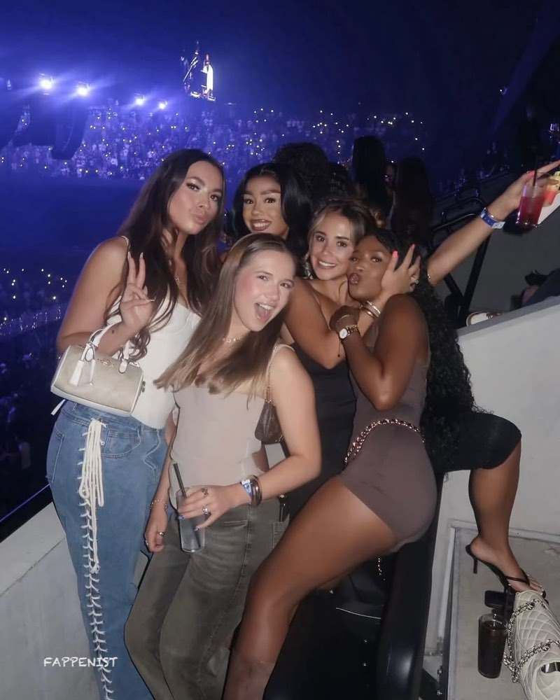 Grace Conder braless boobs showing nice cleavage with her tits in a tight sexy top going to a concert.