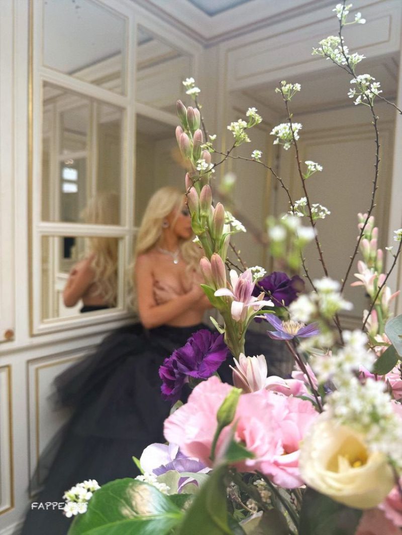 Christina Aguilera topless boobs on display in Paris in her hotel for a little photoshoot while getting dressed holding her nude big tits.