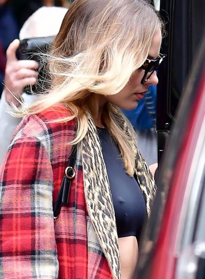 Margot Robbie Braless Boobs Showing Off Her Pierced Nipple