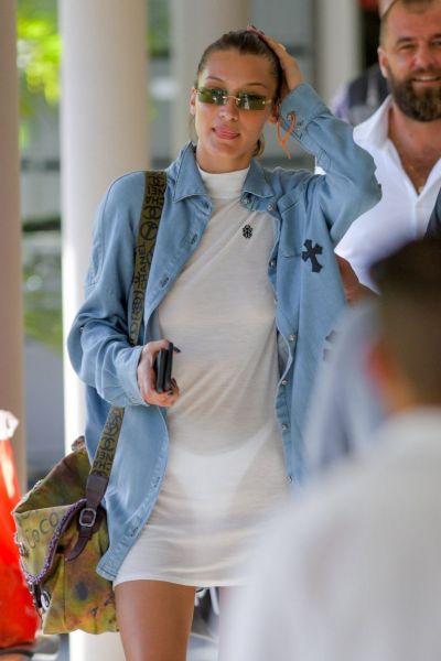Bella Hadid Braless Boobs in a See Through Dress