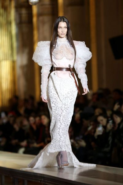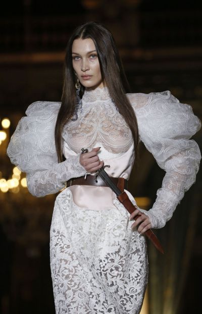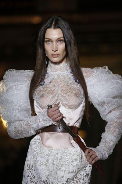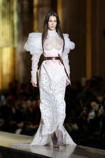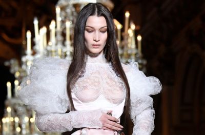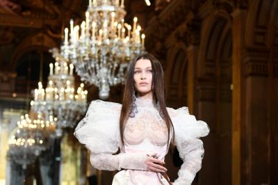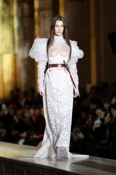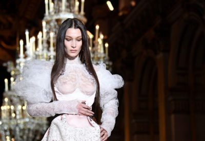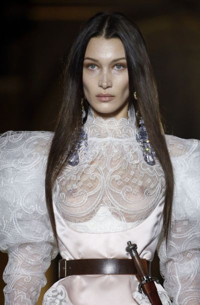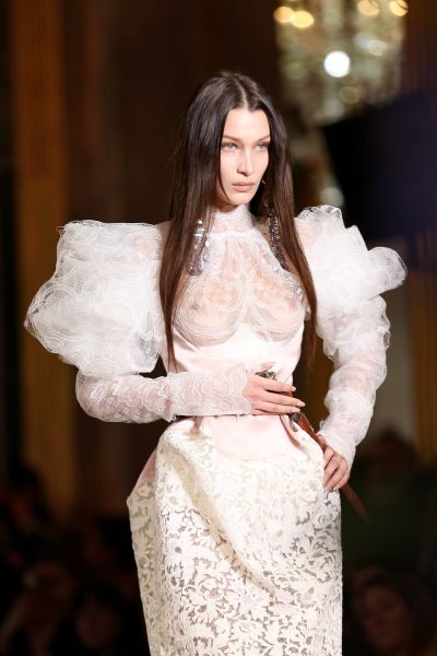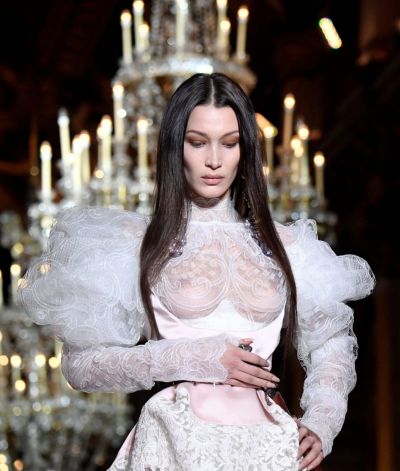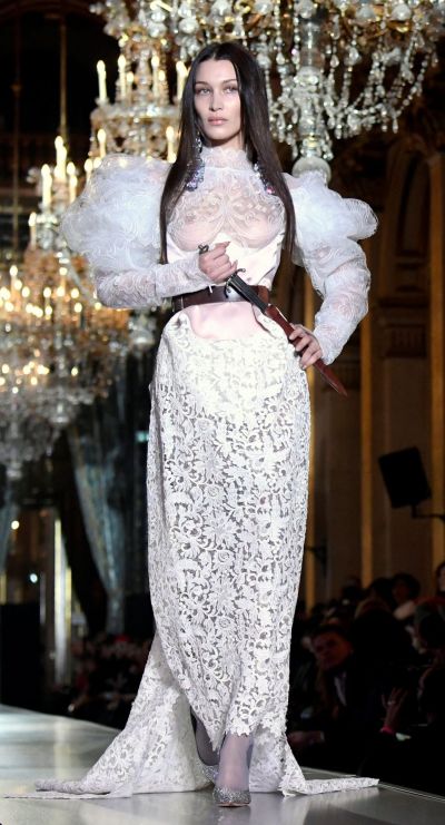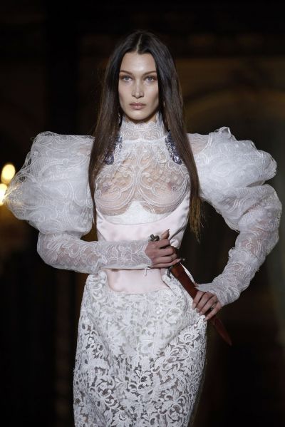 Bella Hadid Braless Boobs in a See Through Dress