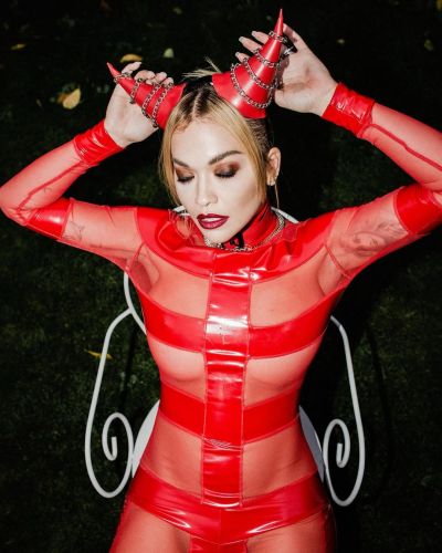 Rita Ora Braless and Pantyless Halloween